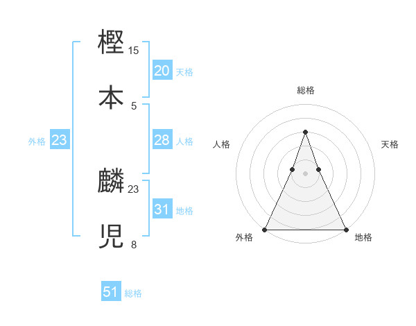 樫本 麟児さんを姓名の画数から五運を鑑定