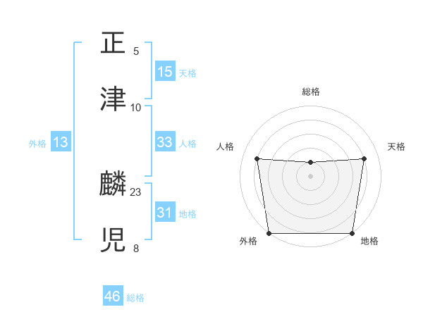 正津 麟児さんの外格は13画の5点!