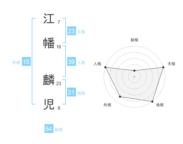 江幡 麟児さんの総格は54画の1点!