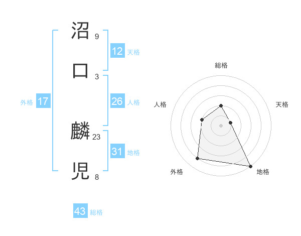 沼口 麟児さんの地格は31画の5点!