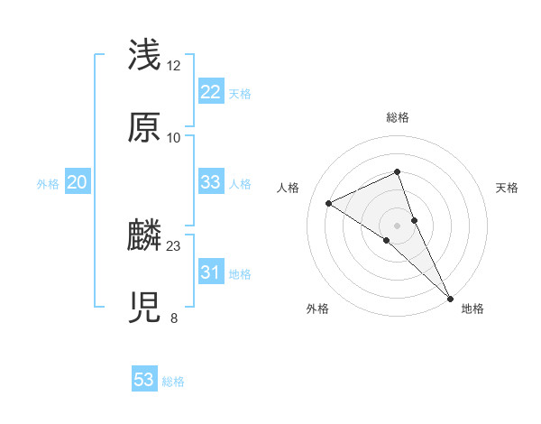 浅原 麟児さんの総格は53画の3点!