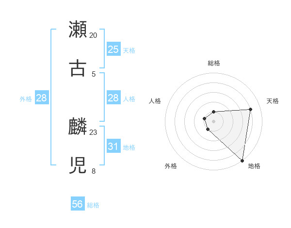 瀬古 麟児さんの天格は25画の4点!