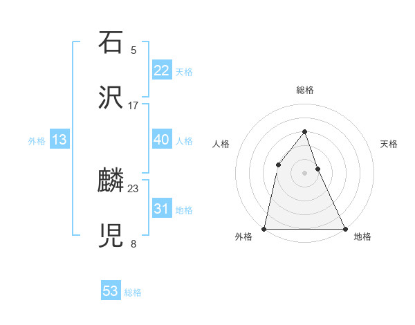 石沢 麟児さんの外格は13画の5点!