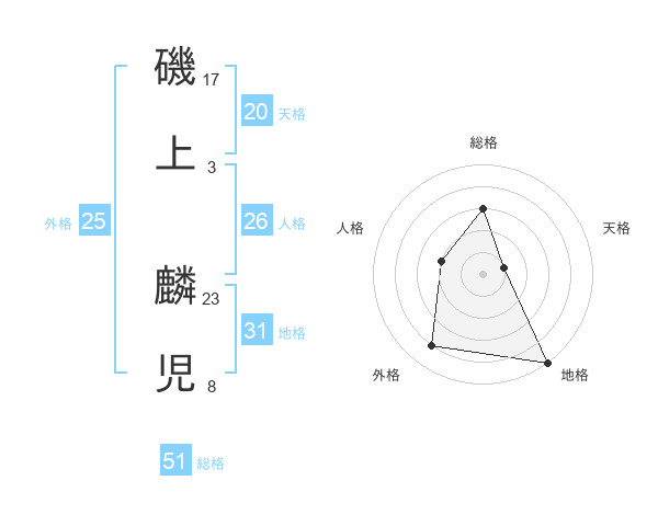 磯上 麟児さんの総格は51画の3点!
