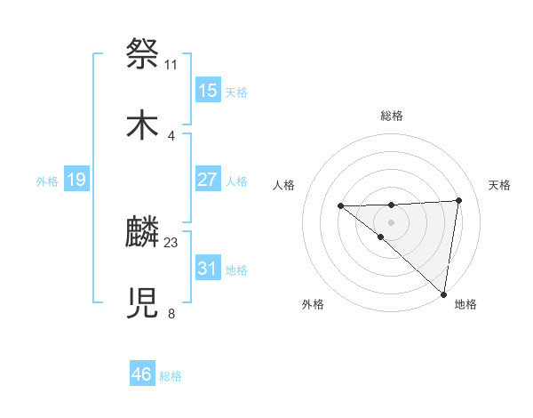 祭木 麟児さんを姓名の画数から五運を鑑定