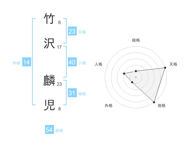 竹沢 麟児さんの天格は23画の5点!