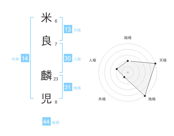米良 麟児さんの総格は44画の2点!