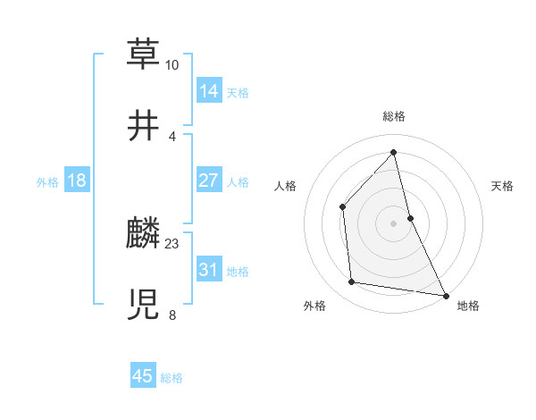 草井 麟児さんの総格は45画の4点!