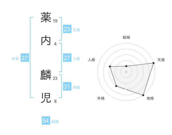 薬内 麟児さんの総格は54画の1点!