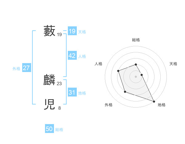 藪 麟児さんの天格は19画の1点!