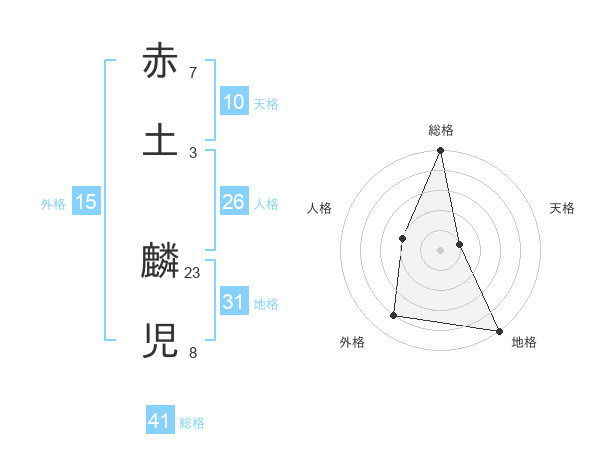 赤土 麟児さんの総格は41画の5点!