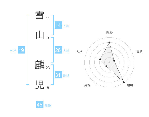 雪山 麟児さんを姓名の画数から五運を鑑定
