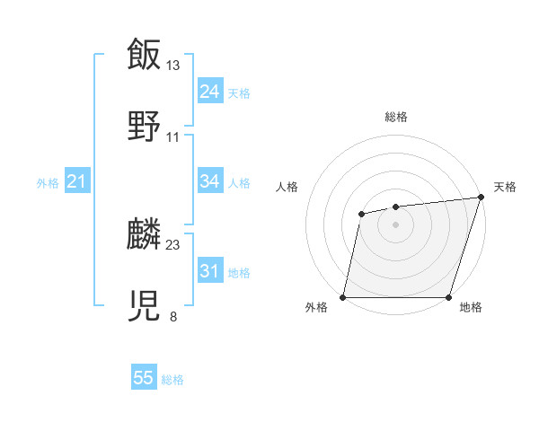 飯野 麟児さんの総格は55画の1点!
