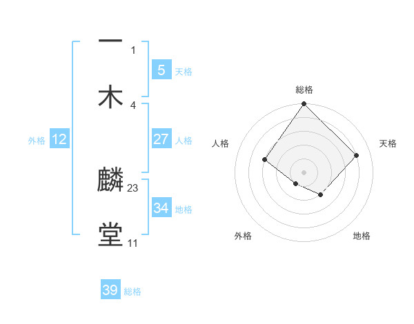 一木 麟堂さんの総格は39画の5点!