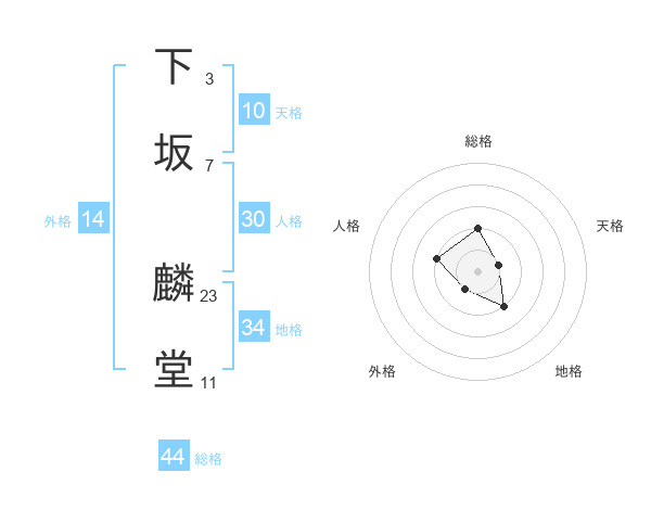 下坂 麟堂さんの総格は44画の2点!