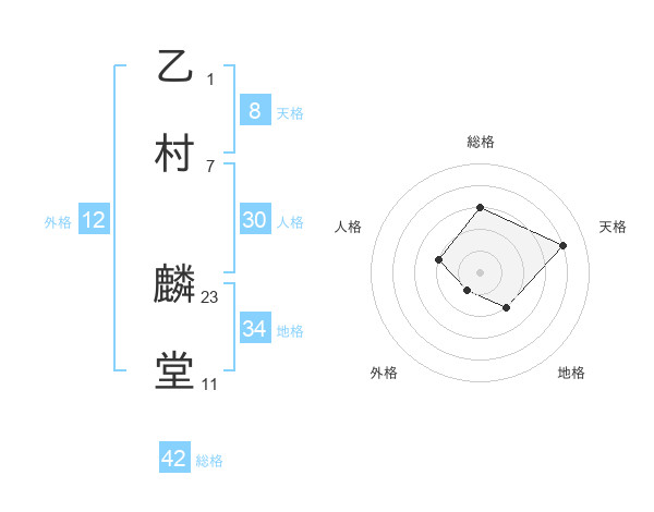 乙村 麟堂さんの総格は42画の3点!