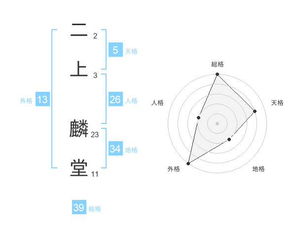 二上 麟堂さんを姓名の画数から五運を鑑定