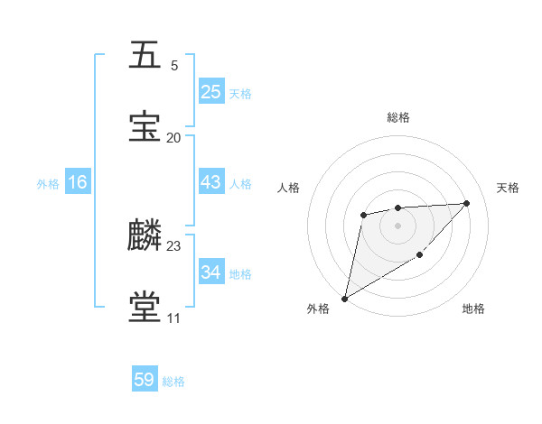 五宝 麟堂さんの天格は25画の4点!