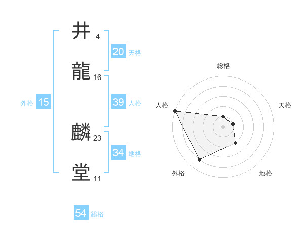 井龍 麟堂さんの天格は20画の1点!
