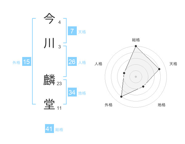 今川 麟堂さんを姓名の画数から五運を鑑定