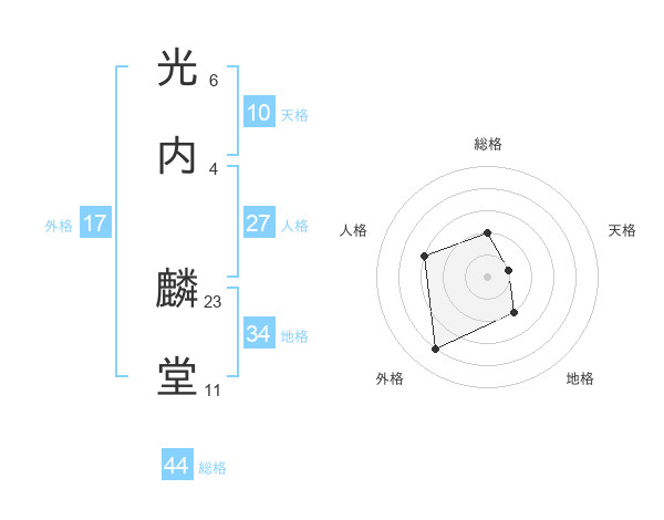 光内 麟堂さんの総格は44画の2点!