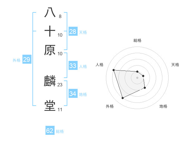 八十原 麟堂さんの総格は62画の1点!