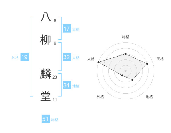 八柳 麟堂さんの総格は51画の3点!