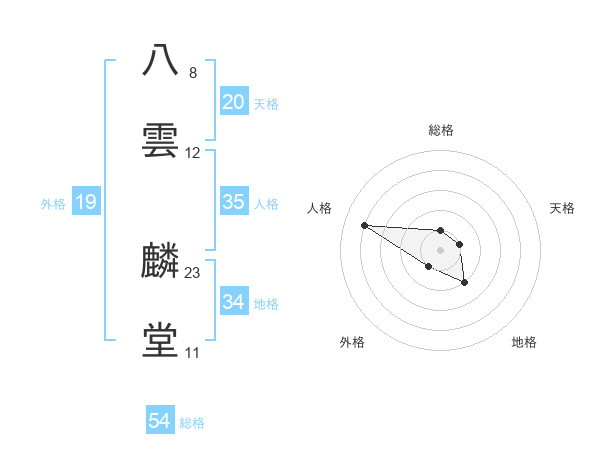 八雲 麟堂さんの天格は20画の1点!