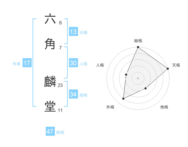六角 麟堂さんの総格は47画の5点!
