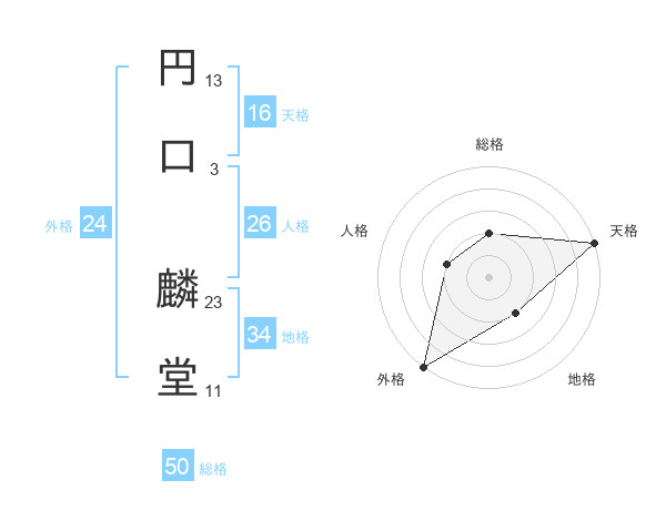 円口 麟堂さんの総格は50画の2点!
