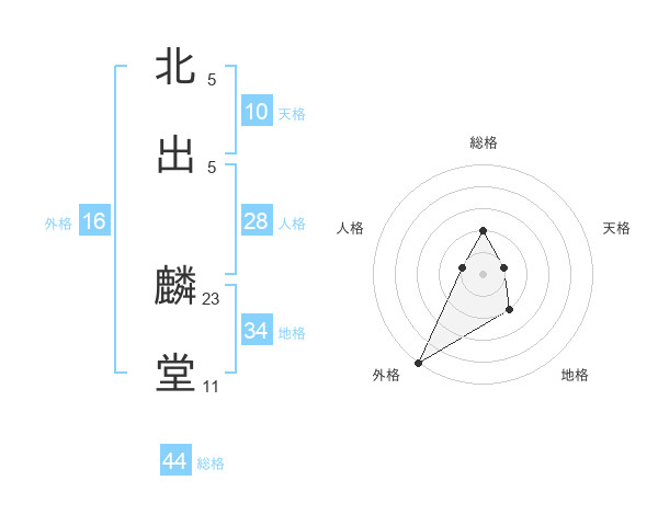 北出 麟堂さんを姓名の画数から五運を鑑定