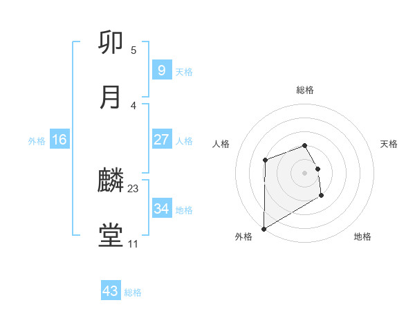 卯月 麟堂さんの外格は16画の5点!