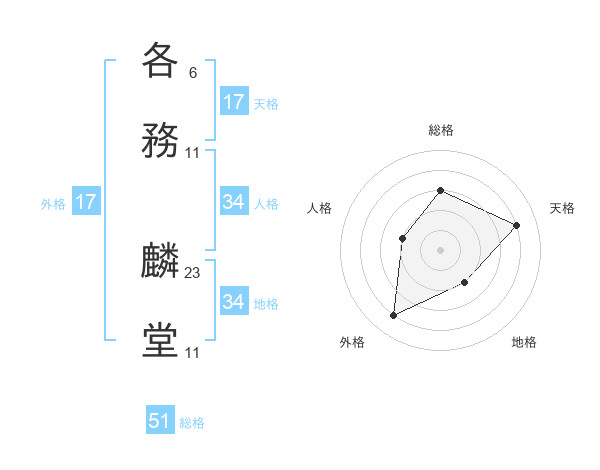 各務 麟堂さんの天格は17画の4点!