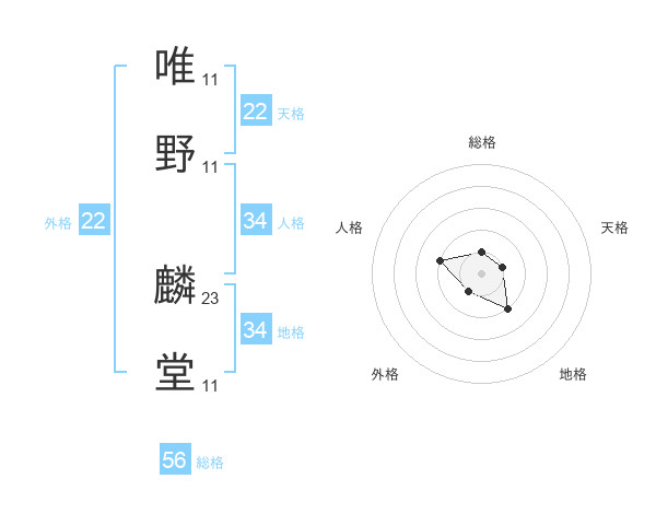 唯野 麟堂さんの天格は22画の1点!