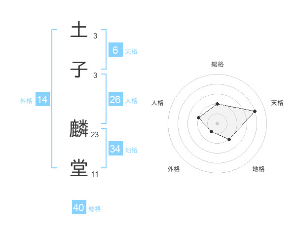 土子 麟堂さんの総格は40画の2点!