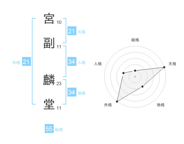 宮副 麟堂さんの外格は21画の5点!