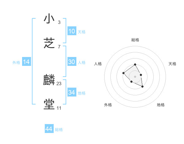 小芝 麟堂さんの総格は44画の2点!