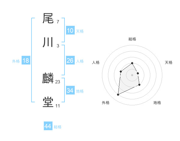 尾川 麟堂さんの総格は44画の2点!