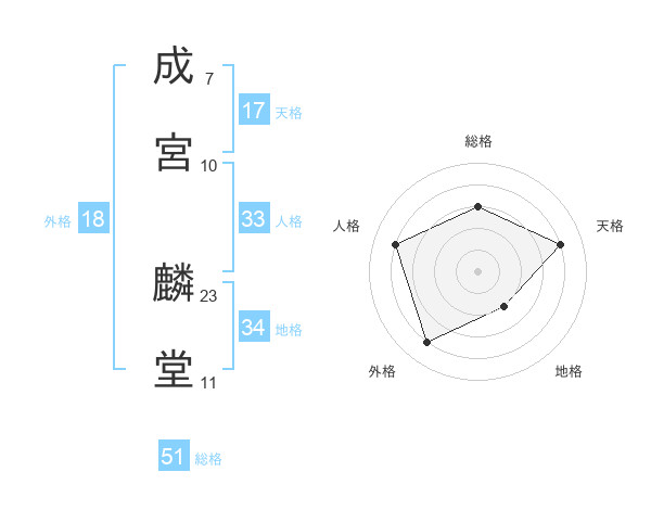 成宮 麟堂さんを姓名の画数から五運を鑑定
