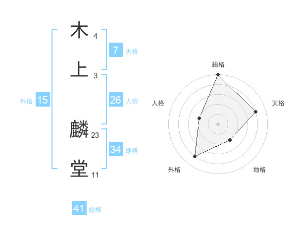 木上 麟堂さんの総格は41画の5点!