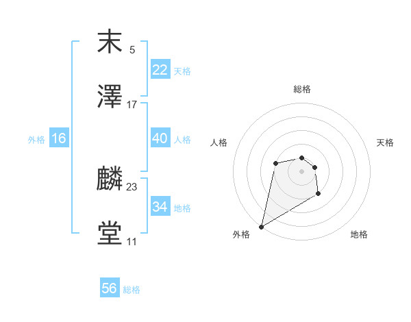 末澤 麟堂さんの外格は16画の5点!