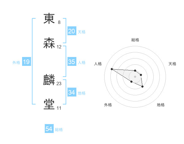 東森 麟堂さんの天格は20画の1点!