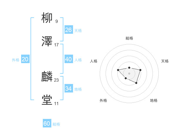 柳澤 麟堂さんの総格は60画の1点!
