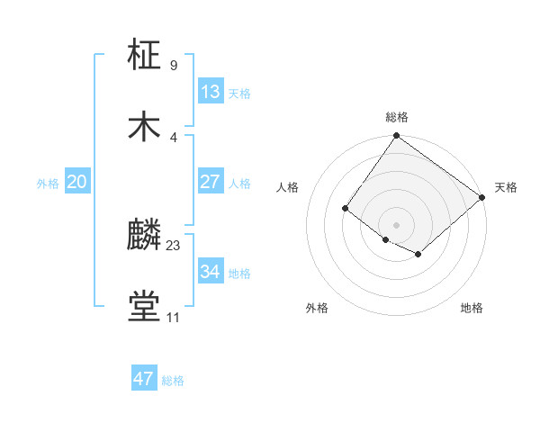 柾木 麟堂さんの総格は47画の5点!