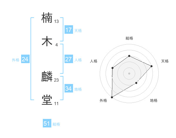 楠木 麟堂さんを姓名の画数から五運を鑑定