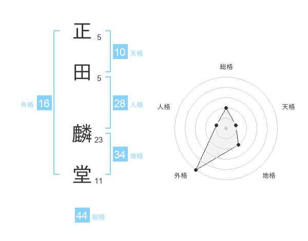 正田 麟堂さんを姓名の画数から五運を鑑定