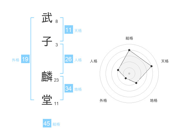 武子 麟堂さんを姓名の画数から五運を鑑定