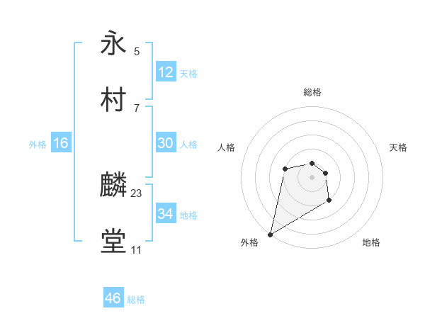 永村 麟堂さんの総格は46画の1点!