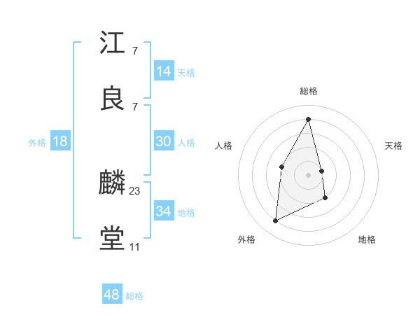 江良 麟堂さんの総格は48画の4点!