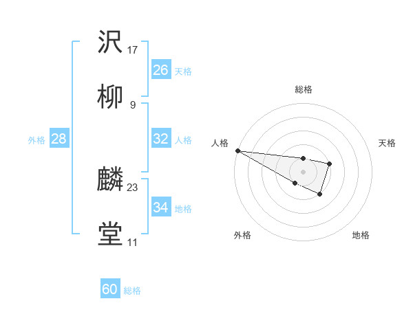 沢柳 麟堂さんの総格は60画の1点!